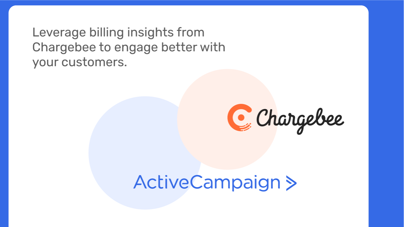 Chargebee's integration syncs customer and subscription information from Chargebee to ActiveCampaign. Define specialized email automation workflows, leveraging 20+ subscription parameters such as subscription dates, invoices due, MRR to engage with customers contextually.