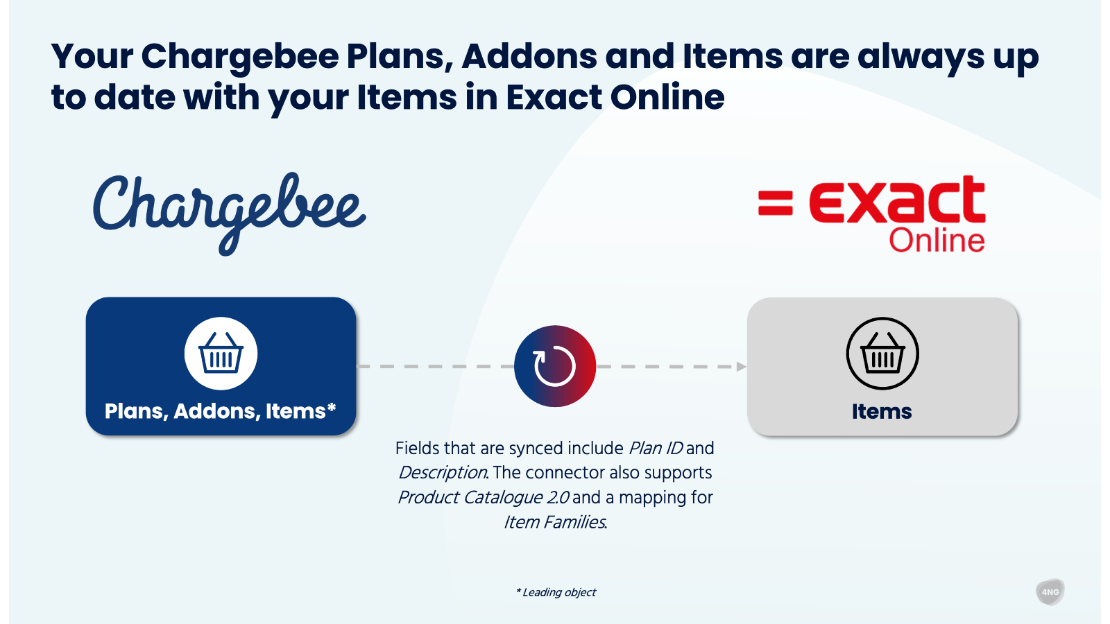 Looking for a way to keep your financial accounting in Exact Online in sync with Chargebee? This integration, provided by official Chargebee partner PossibilIT, automatically syncs all your subscriptions, accounts, invoices and financial transactions between both solutions.