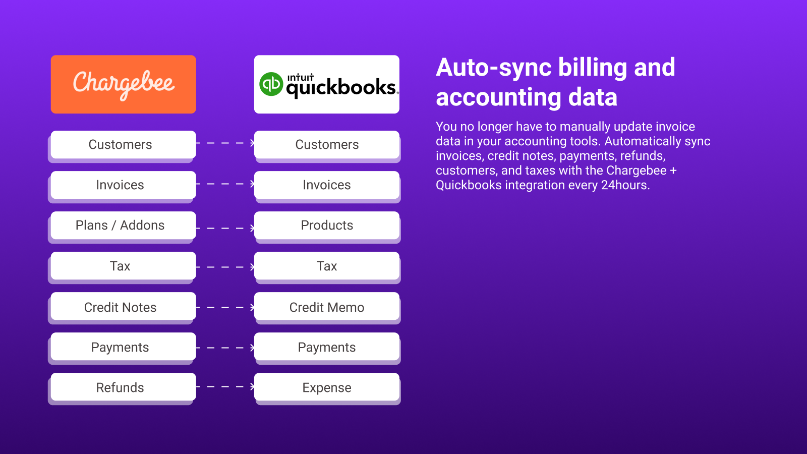 Chargebee integrates with QuickBooks Online so you can close books faster and accurately with automated financial operations, and streamline your Subscription Accounting.