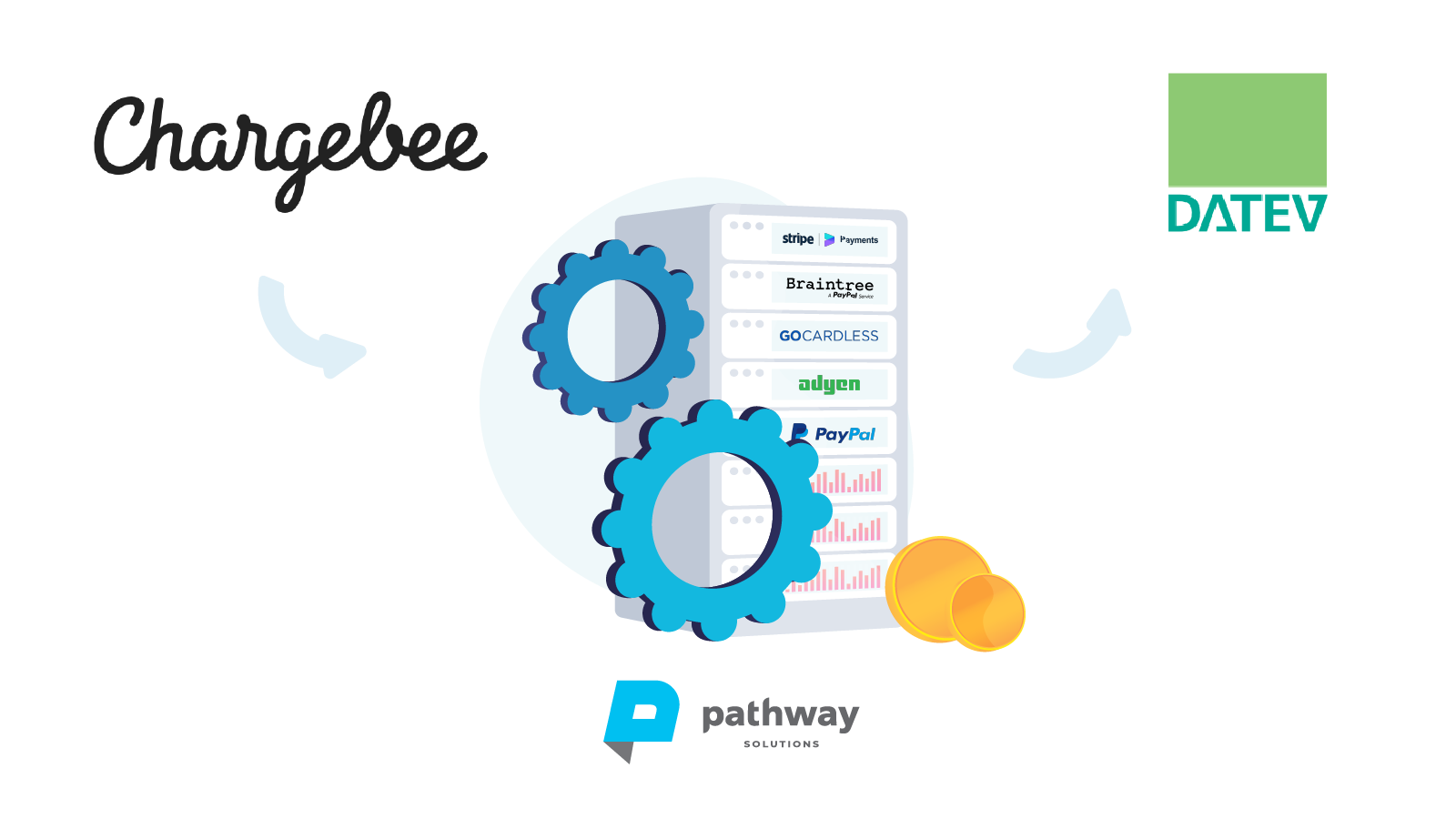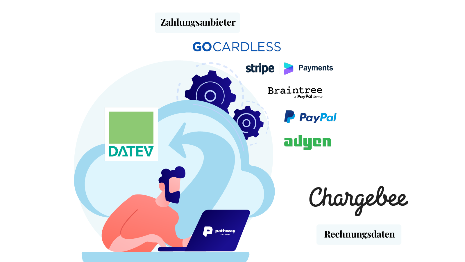 Get your accounting data within one click to your tax lawyer or bookkeeper. Use the software to setup automized booking rules and allocate all payment providers to revenues. Pathway solutions integrates with all payment providers.