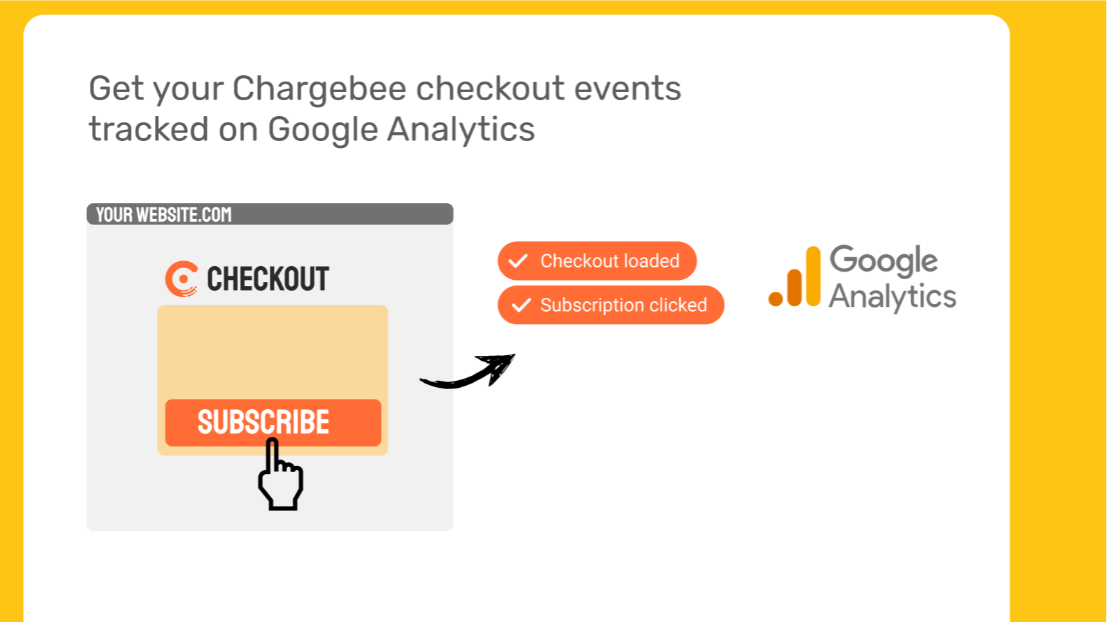 Chargebee's integration with Google Analytics, you can make use of Events Analytics to gauge the usage of your Chargebee Checkout pages, Self-serve portal and Thank you pages.