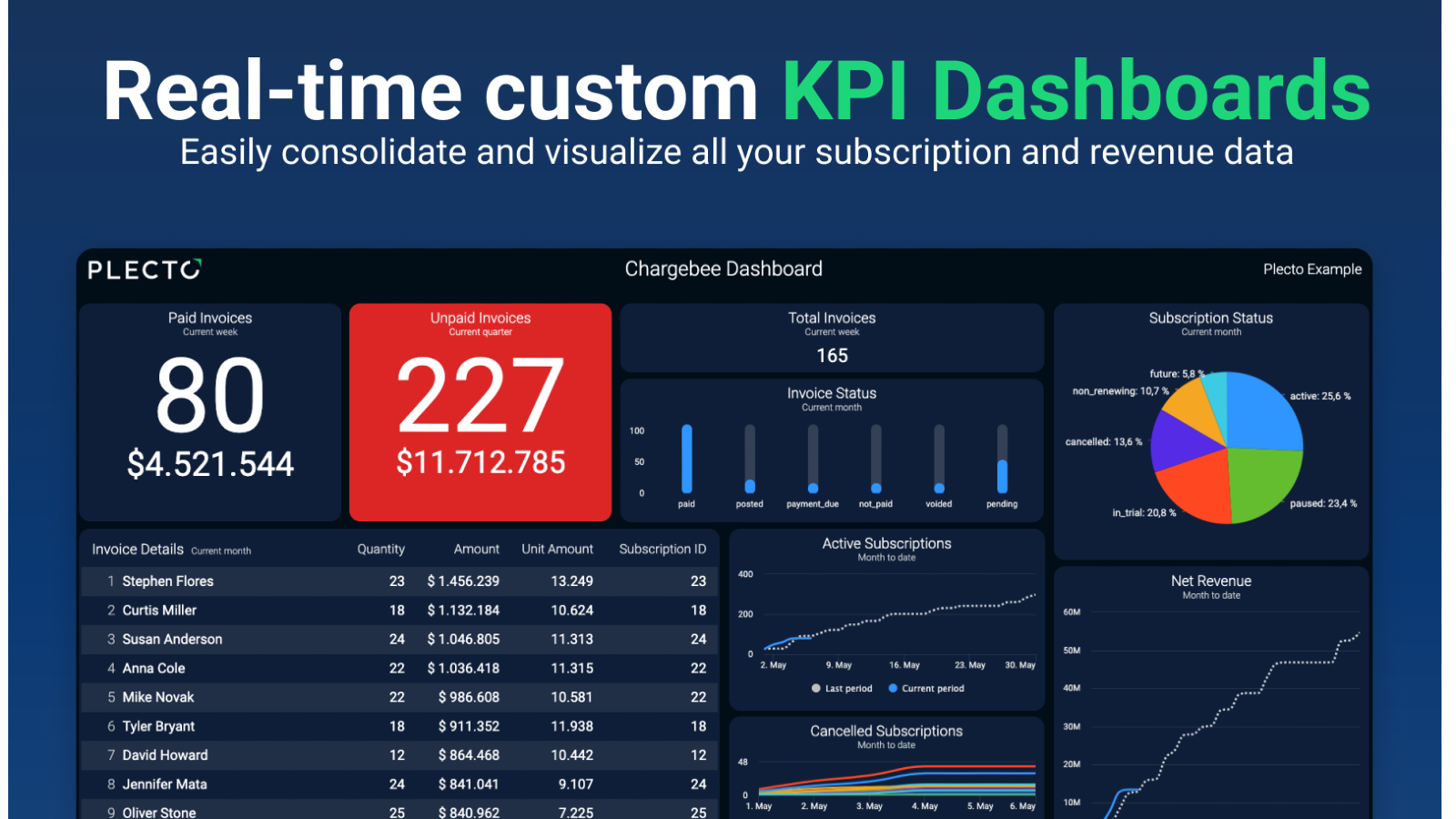 Master your subscription management and maximize revenue by integrating your Chargebee revenue data into Plecto!