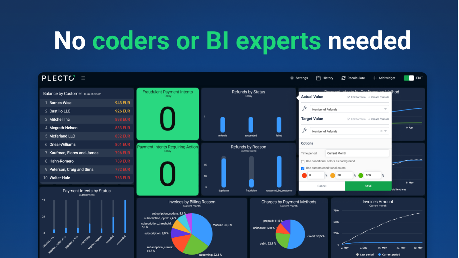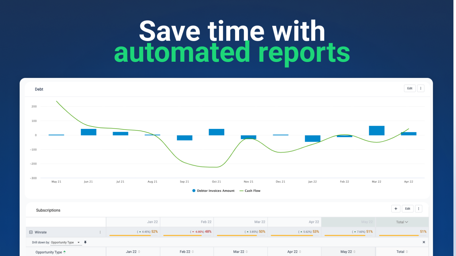 Make actionable decisions with real-time payment, invoicing, and subscription data – so you reduce risk and raise revenue. Empower your team to take accountability for business results by visualizing their performance in real-time on KPI dashboards that are always up-to-date and always accessible. Boost motivation with game-changing gamification, and elevate your reports with time-saving automation.